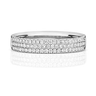 An everlasting symbol of your love and commitment, this stunning 18K white gold diamond set eternity ring is set with 3 rows of dazzling claw set round brilliant cut diamonds. This versatile ring can be purchased as a wedding band or eternity band.