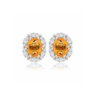 Upgrade your look with these stunning 9K gold earrings featuring a vibrant orange citrine gemstone and a dazzling diamond halo. The luxurious gold and warm gemstone create a unique and special combination.