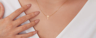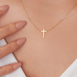 9K Yellow Gold 'Cross' Sleeper Hoop Earrings