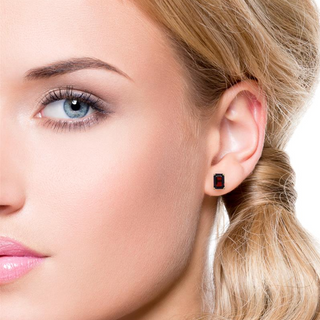 9K Yellow Gold Octagon Cut Garnet Stud Earrings