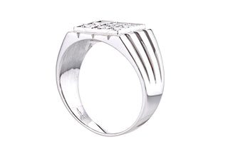 9K White Gold Men's Square Cubic Zirconia Signet Ring