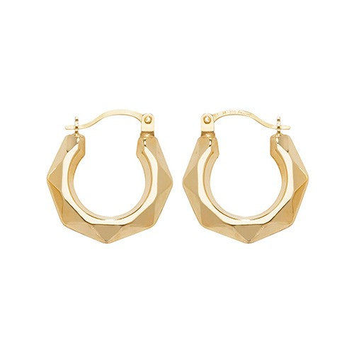 9K Yellow Gold 10mm Faceted Hoop Earrings