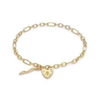 This elegant bracelet is crafted in 9K yellow gold and features a classic straight Figaro chain design. It is secured with a traditional padlock clasp complemented by a delicate safety chain for added peace of mind. Timeless and versatile, it's perfect for everyday wear or special occasions.