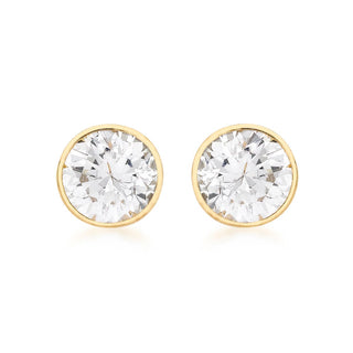 9K Yellow Gold CZ Round Stud Earrings