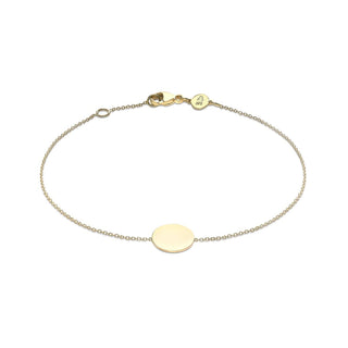 This 9K yellow gold bracelet features a sleek, polished disc at its centre, offering minimalist elegance with a contemporary touch. The adjustable design ensures a comfortable and personalised fit for any wrist. Subtle and stylish, it’s perfect for everyday wear or layering with other pieces.