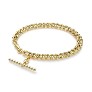 This chunky 9K yellow gold Albert bracelet features a hollow round curb chain and a classic T-bar fastening for vintage-inspired charm. The bold design makes a striking statement while remaining lightweight thanks to its hollow construction. Perfect for adding timeless character to both casual and formal looks.